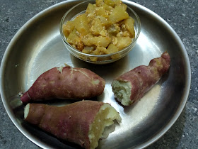 Steamed Sweet potato, Bottle gourd curry